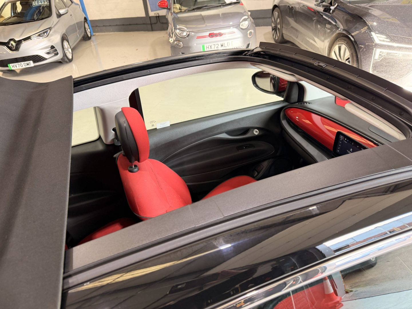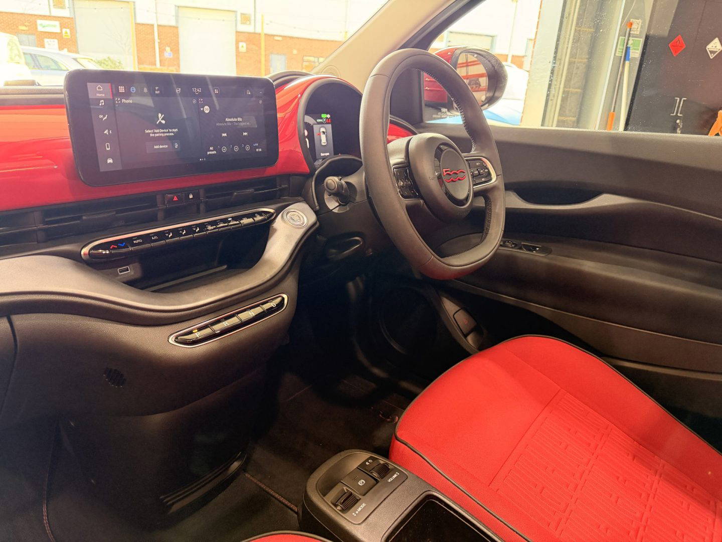 It may only be January, but the summer will be here before we know it, be ready with this stunning convertible Fiat 500e. Features include a 10.5 inch touchscreen infotainment system with Apple Car Play/Android Auto, DAB radio, 2x USB ports, 4x speakers, electric windows, electric wing mirrors, cloth seats, Eco leather steering wheel, LED daytime running lights, cruise control, lane keeping assist, rear parking sensors, rain sensor, 16 inch alloy wheels, rear seats split 50/50