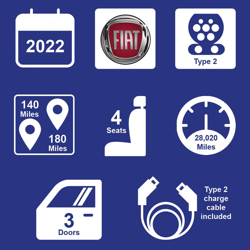 Range approx 140-180 miles. Type two and 3 pin charge cables included in sale. Power BHP: 116 BHP | Cargo: 185L | Drivetrain: Front Wheel | Top Speed: 93 MPH Service history. MOT. 2x Keys.