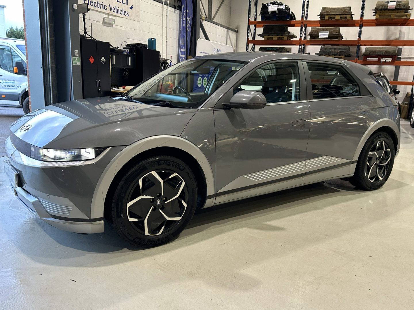 We are proud to present the stunning Ioniq 5 finished in grey, this has the bigger battery finished in the matt silver, truly a stunning car. 12.3” touchscreen media centre with sat nav, DAB radio, Apple CarPlay/Android Auto, Bluetooth, wireless phone charging pad, 19” alloy wheels, LED running lights, electric drivers seat, electric windows, electric mirrors, heated front seats, heated steering wheel, under the bonnet storage, ISOFIX system, air con, lane assist, Smart cruise control, sliding rear seats, power tailgate, rear privacy glass. This car also come with the V2L converter - the V2L function can supply up to 3.6 kw of power. The V2L port is located under the second-row seats, and it can be activated when a vehicle is on. Another V2L port is located at the charging port on the vehicle exterior. Using a converter, customers can charge high-power electric equipment.