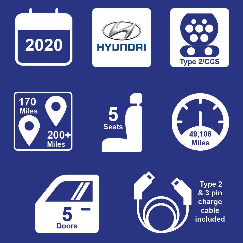 Range 170–200+ miles. Type 2 and 3 pin charge cable included in sale. Power BHP: 134 BHP | Cargo: 357L | Drivetrain: Front Wheel | Top Speed: 103 MPH Full service history, MOT. 2x keys.