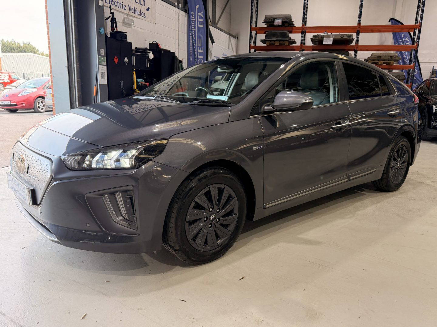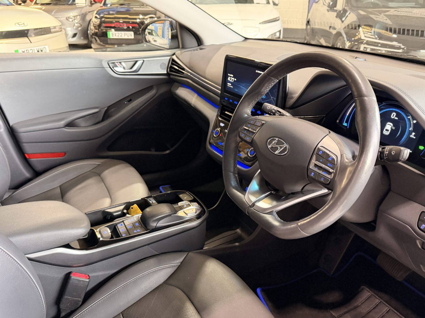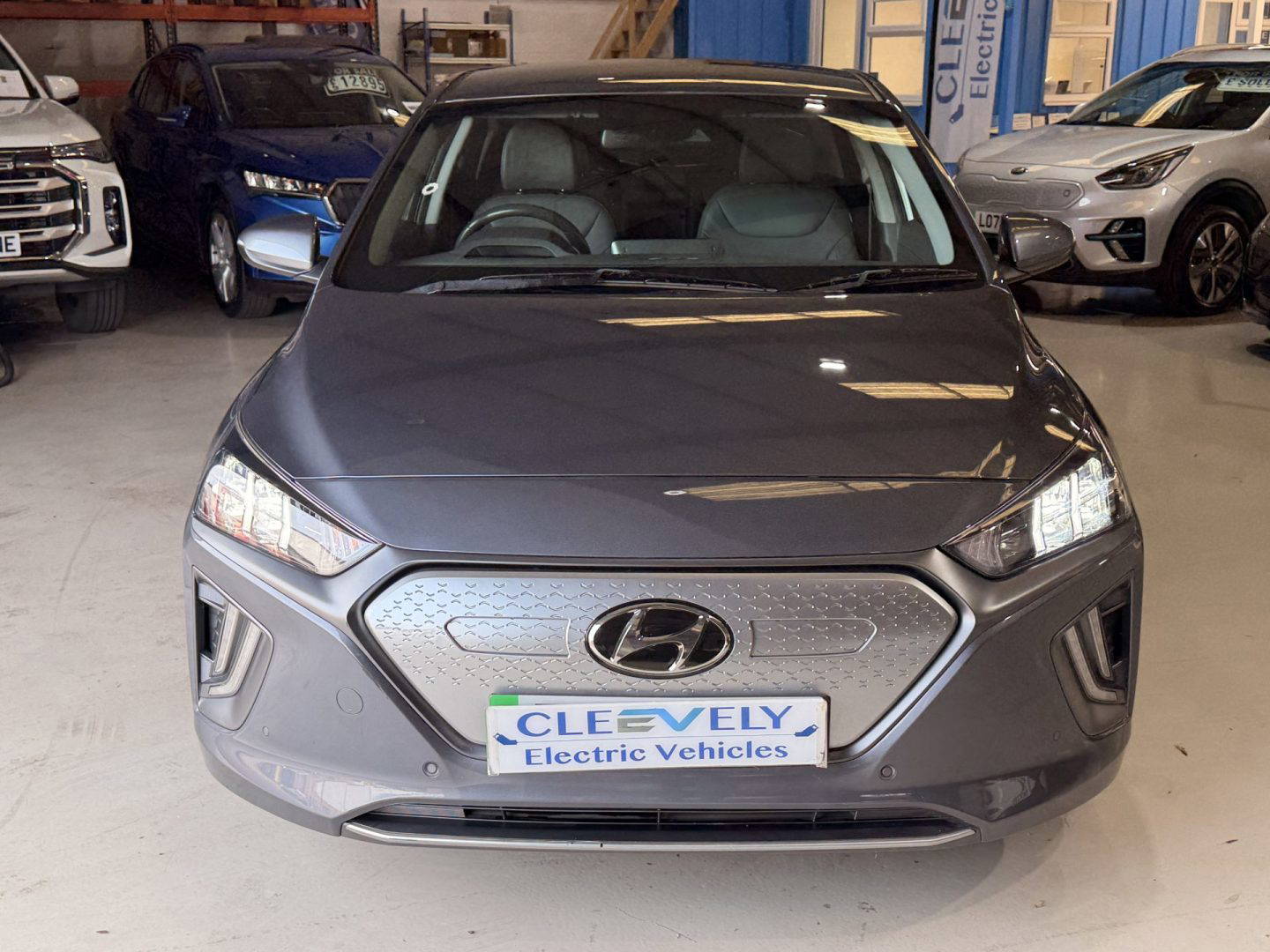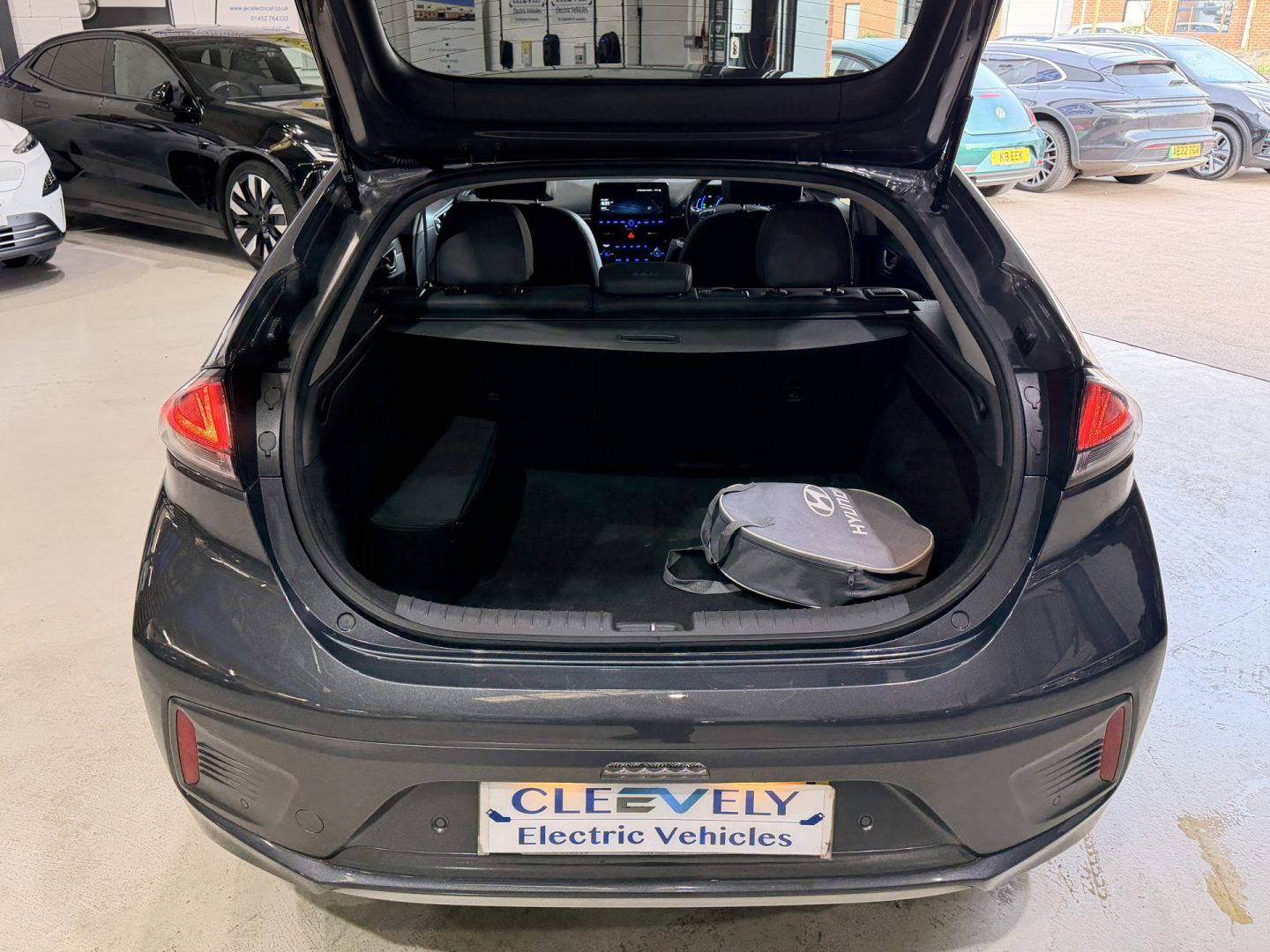 Top of the range Hyundai Ioniq Premium SE in metallic grey, this is a very efficient car, it come with the following: leather seats, touchscreen Sat Nav, USB/AUX connections, Bluetooth, upgraded Infinity sound system (1 centre, 2 tweeters, 2 front, 2 rear, 1 subwoofer and 1 ext amp), DAB radio, Apple CarPlay/Android Auto, wireless phone charging pad, lane departure warning system with lane assist, cruise control with stop & go function, TPMS system, 12v power outlet, rear camera with guidance system, rear parking sensors, electric windows, electric folding mirrors, air con, auto dimming rear mirror, rain sensor wipers, heated & cooling front seats, heated steering wheel, split folding rear seats – 60-40, steering wheel audio/phone & cruise controls, 16 inch alloys.