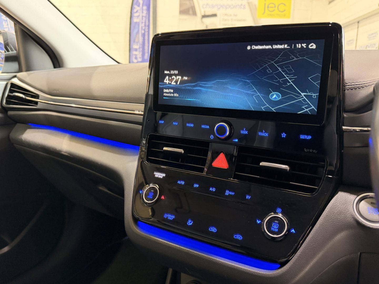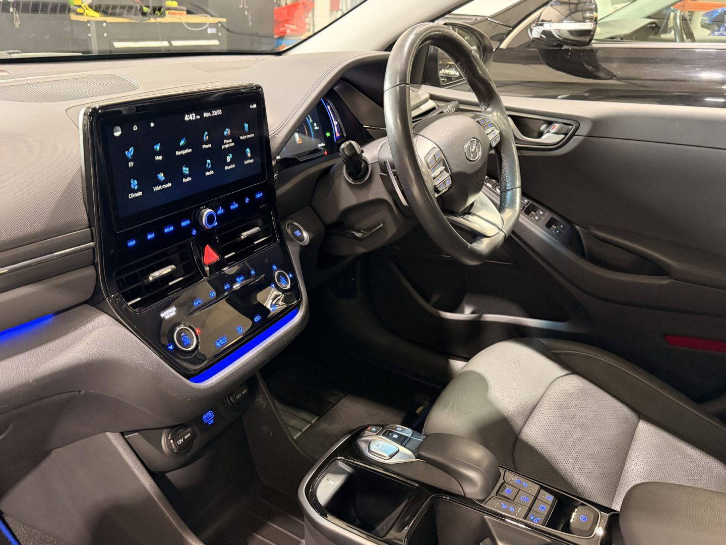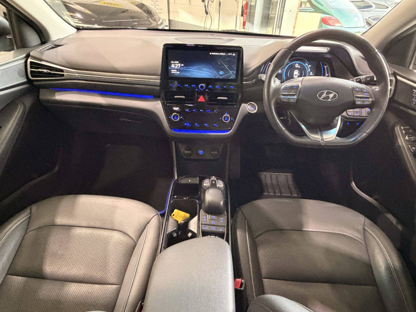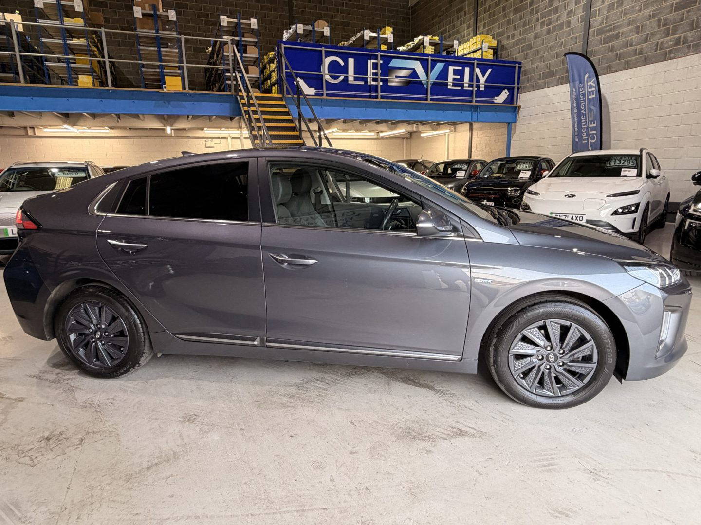 Top of the range Hyundai Ioniq Premium SE in metallic grey, this is a very efficient car, it come with the following: leather seats, touchscreen Sat Nav, USB/AUX connections, Bluetooth, upgraded Infinity sound system (1 centre, 2 tweeters, 2 front, 2 rear, 1 subwoofer and 1 ext amp), DAB radio, Apple CarPlay/Android Auto, wireless phone charging pad, lane departure warning system with lane assist, cruise control with stop & go function, TPMS system, 12v power outlet, rear camera with guidance system, rear parking sensors, electric windows, electric folding mirrors, air con, auto dimming rear mirror, rain sensor wipers, heated & cooling front seats, heated steering wheel, split folding rear seats – 60-40, steering wheel audio/phone & cruise controls, 16 inch alloys.