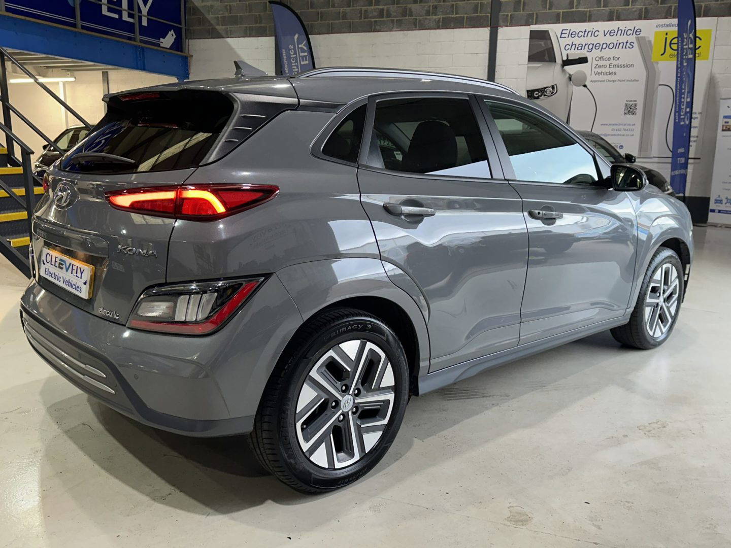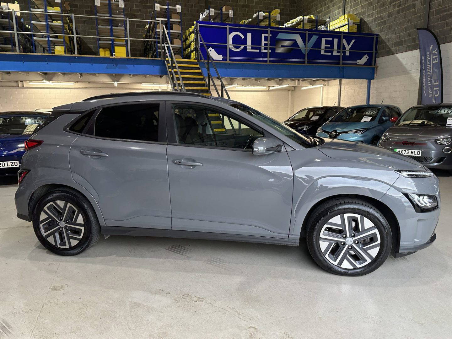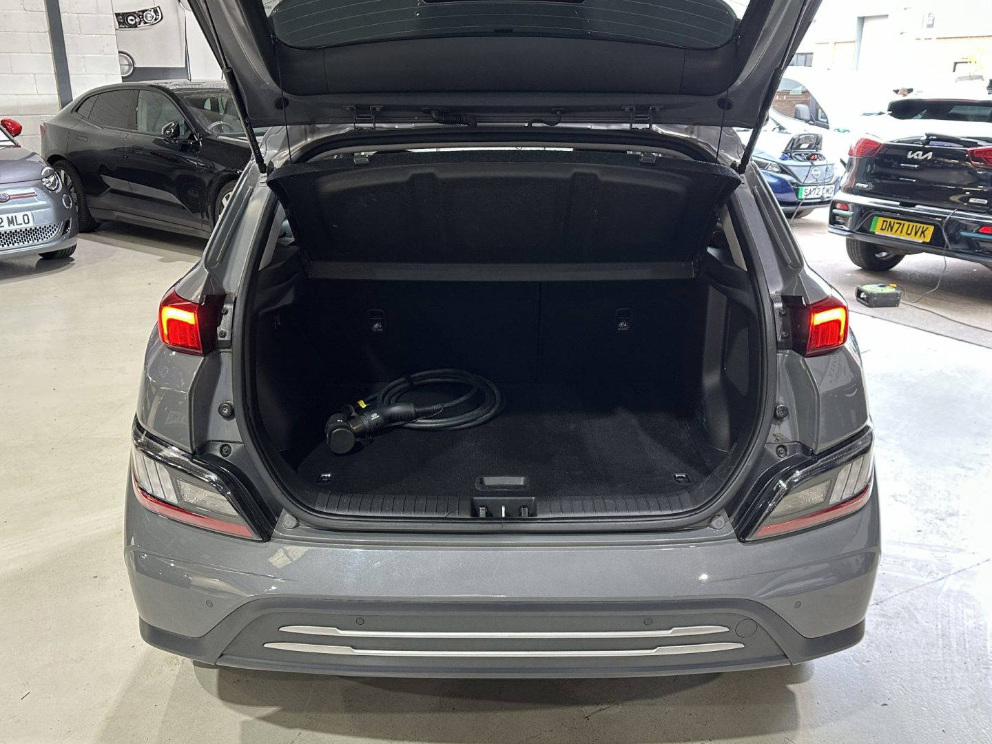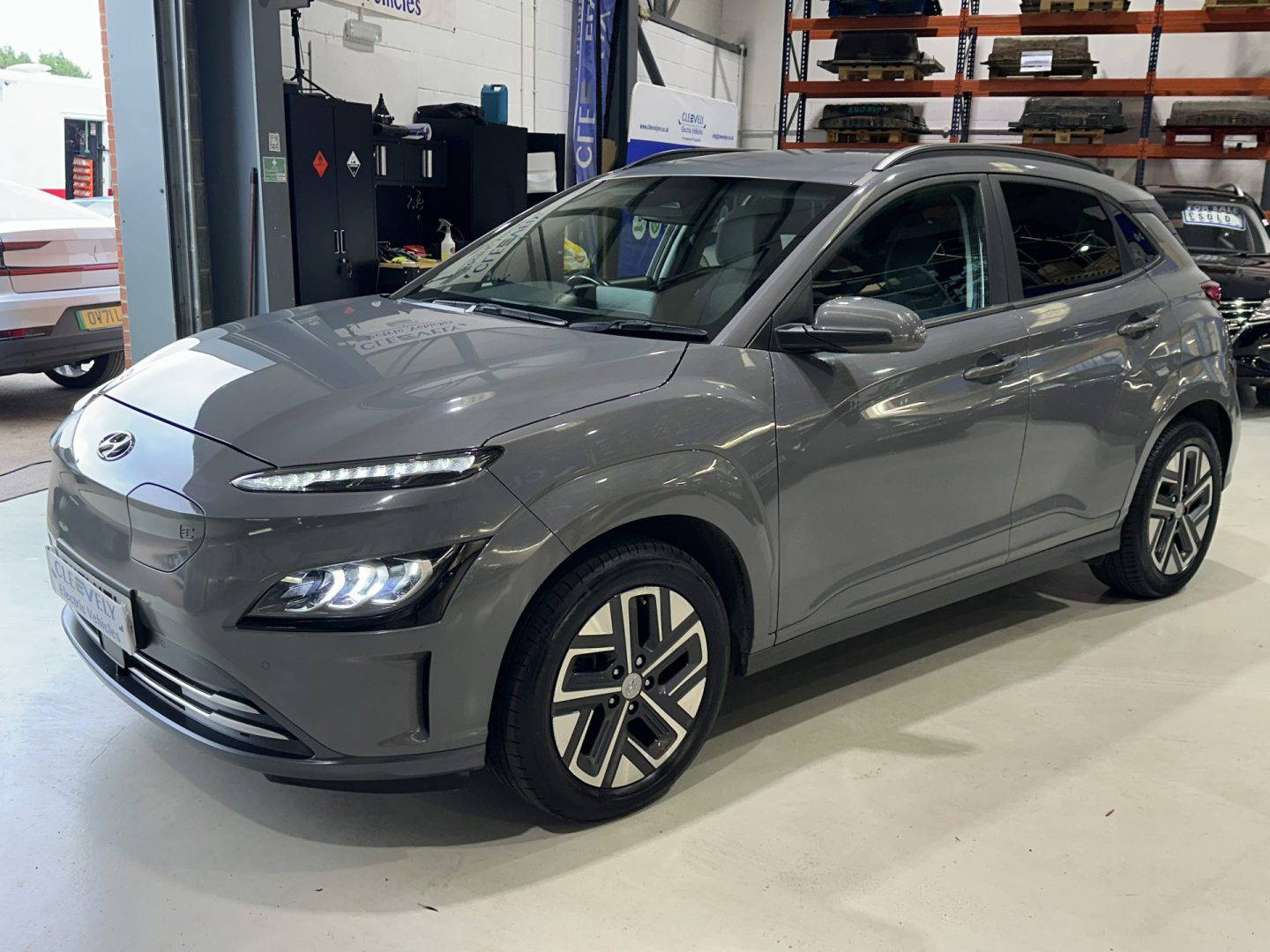 New shape Kona with a cloth interior, DAB radio, 10” widescreen navigation, Apple CarPlay, Android Auto, Bluetooth, Krell premium 8 speaker audio system, wireless phone charging, driver attention warning, front and rear parking sensors, colour reversing camera, 17” alloy wheels, folding mirrors, electric mirrors front and rear, rear privacy glass, heated front seats, heated steering wheel, air con, climate control, battery heater, roof rails, lane assist, auto dimming rear mirror, cruise control with speed limiter, LED daytime running lights, hill start assist control.