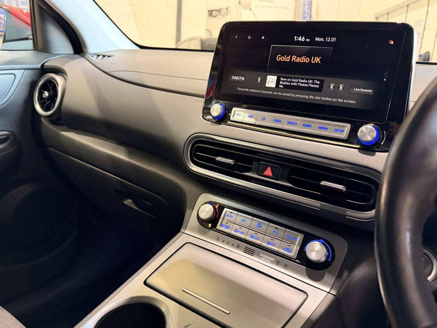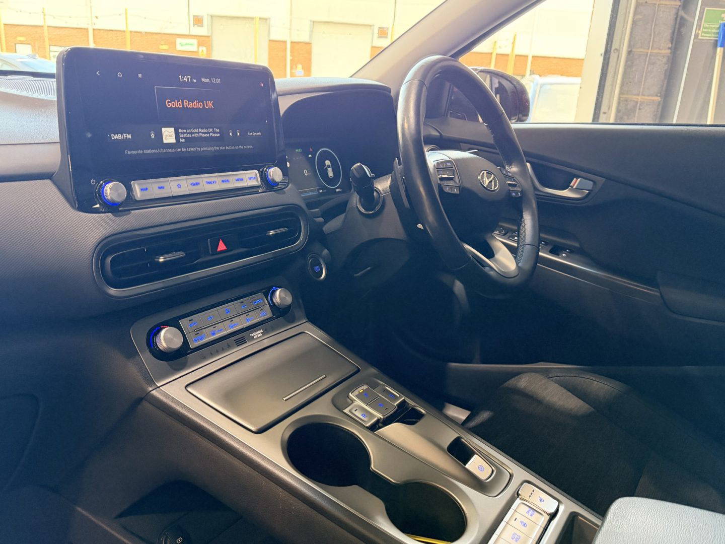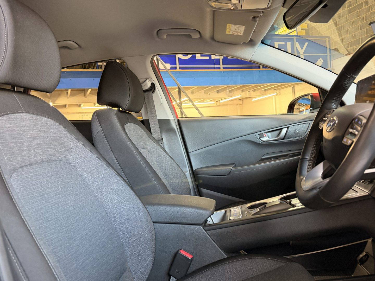 New shape Kona in stunning red. Spec includes a cloth interior, DAB radio, 10” widescreen navigation, Apple CarPlay, Android Auto, Bluetooth, Krell premium 8 speaker audio system, wireless phone charging, driver attention warning, front and rear parking sensors, colour reversing camera, 17” alloy wheels, folding mirrors, electric mirrors front and rear, rear privacy glass, heated front seats, heated steering wheel, air con, climate control, battery heater, roof rails, lane assist, auto dimming rear mirror, cruise control with speed limiter, LED daytime running lights, hill start assist control.