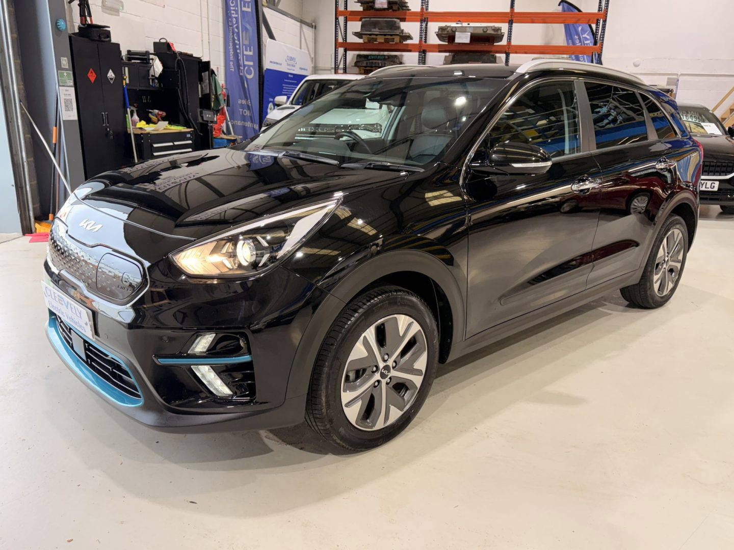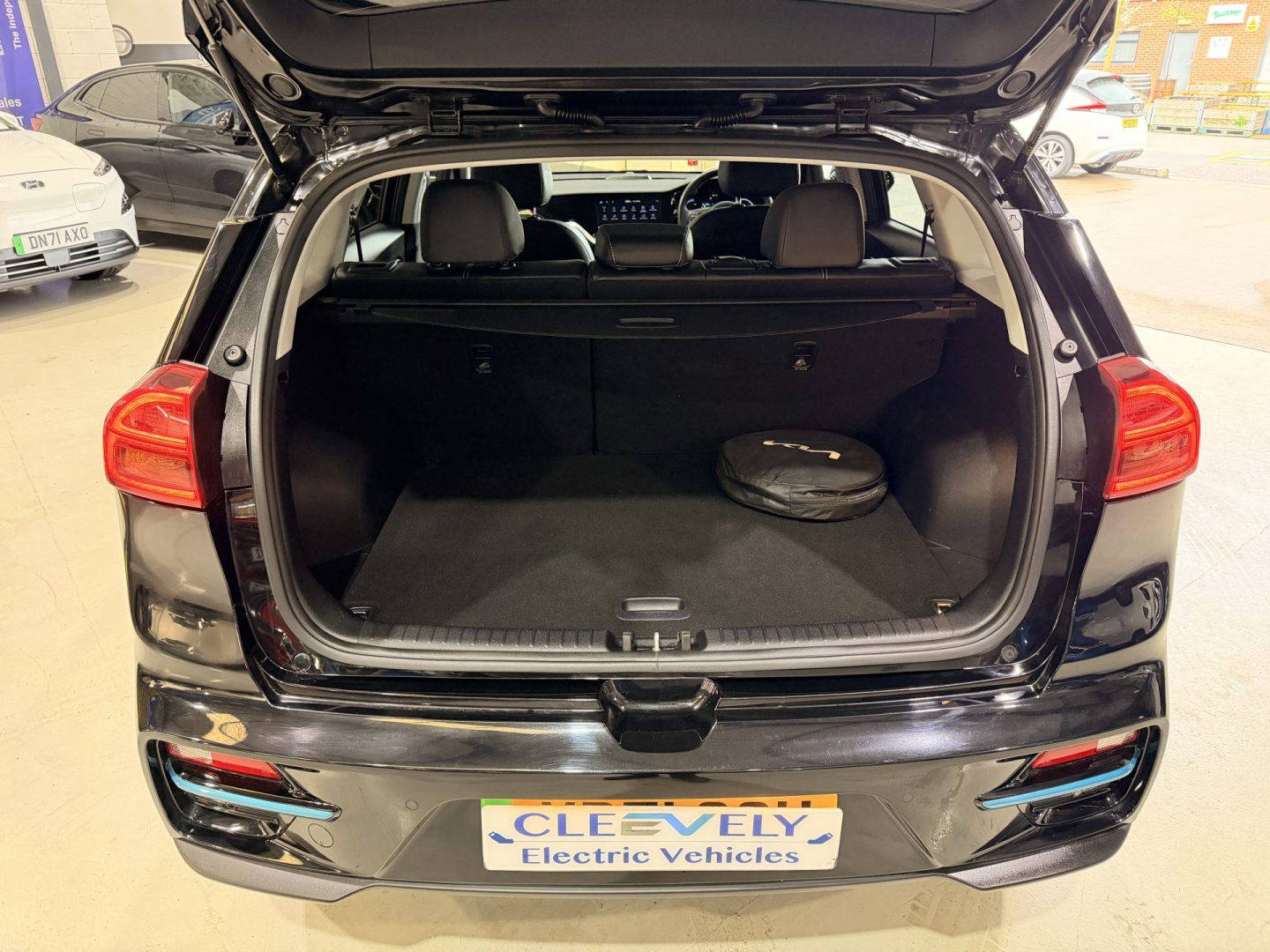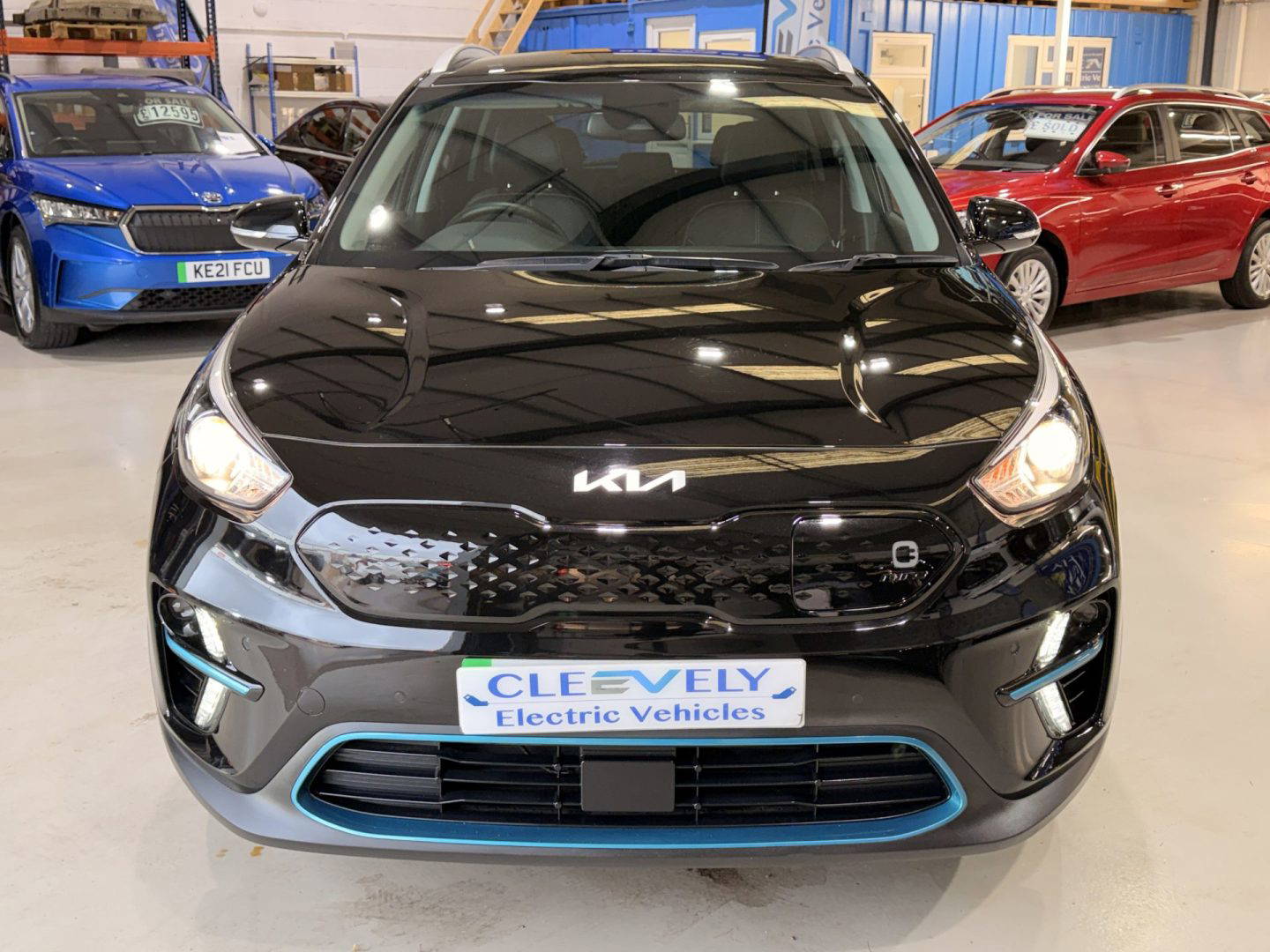 Kia eNiro 3, finished in black. This car comes with the following: 10” touchscreen satnav, DAB radio, 6 speaker sound system, 17” alloy wheels, adaptive smart cruise control, Apple Car Play and Android Auto, wireless phone charging, auto dimming rear mirror, auto headlights, Bluetooth connectivity, heated front seats, heated steering wheel, lane assist, rear privacy glass, front and rear parking sensors, colour reversing camera, electric windows, electric folding wing mirrors, auto dimming rear view mirror, LED daytime running lights, roof rails, rear spoiler, solar glass, shark fin antenna, driver’s seat lumber support, ISOFIX system.