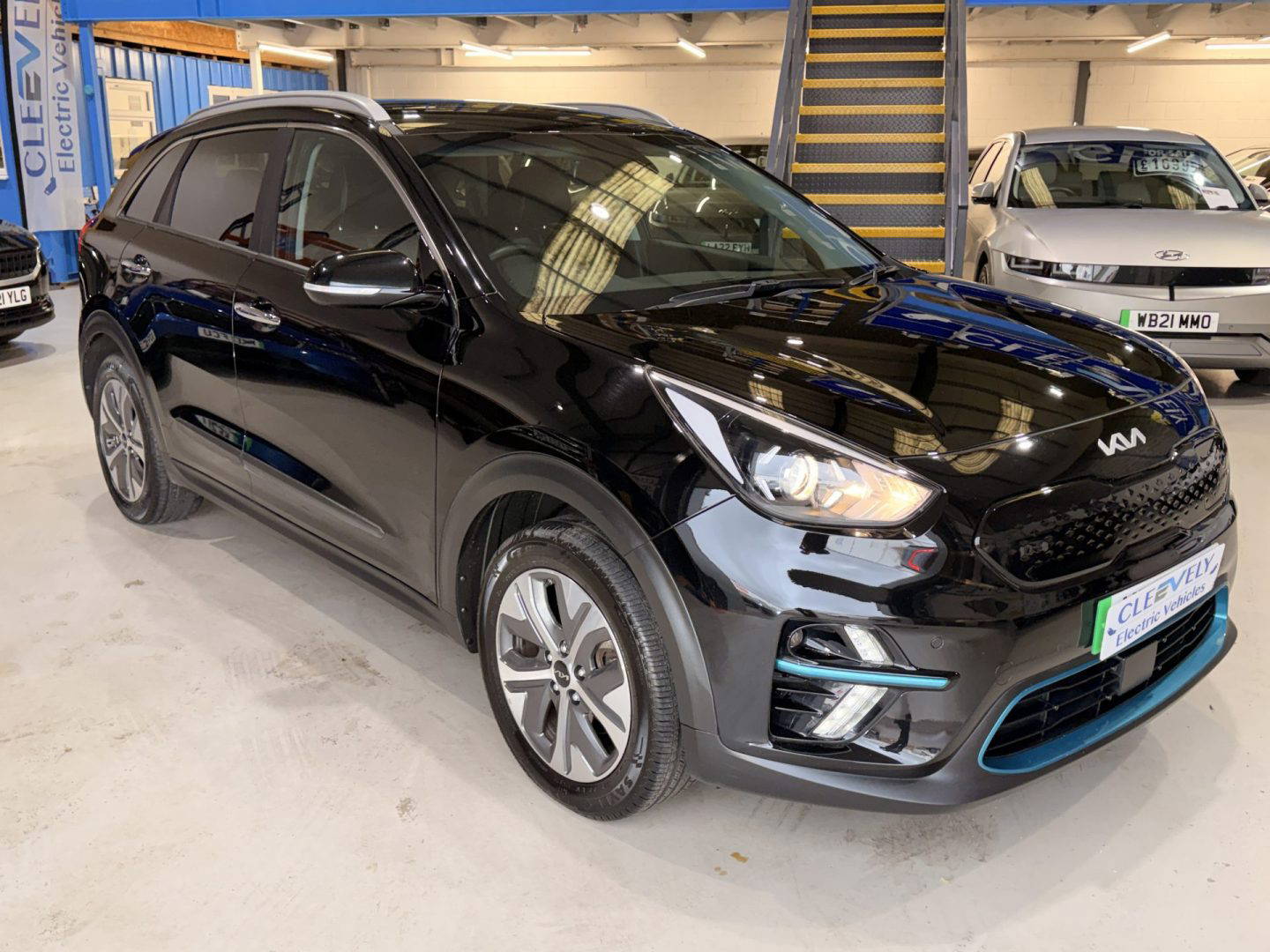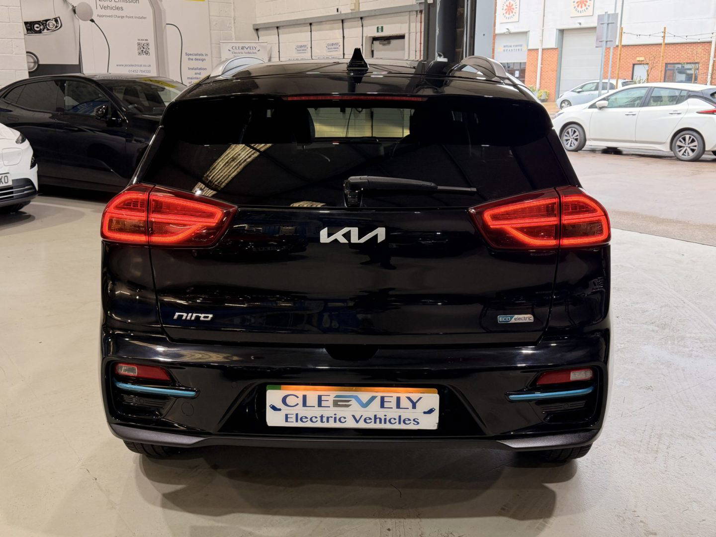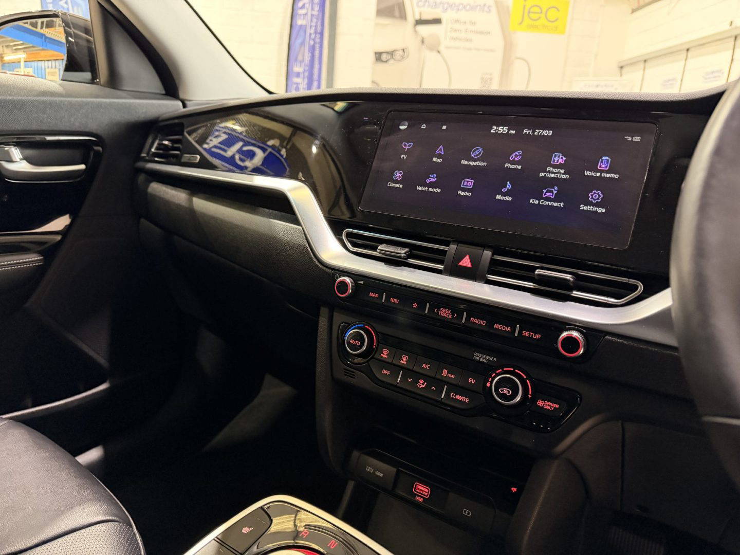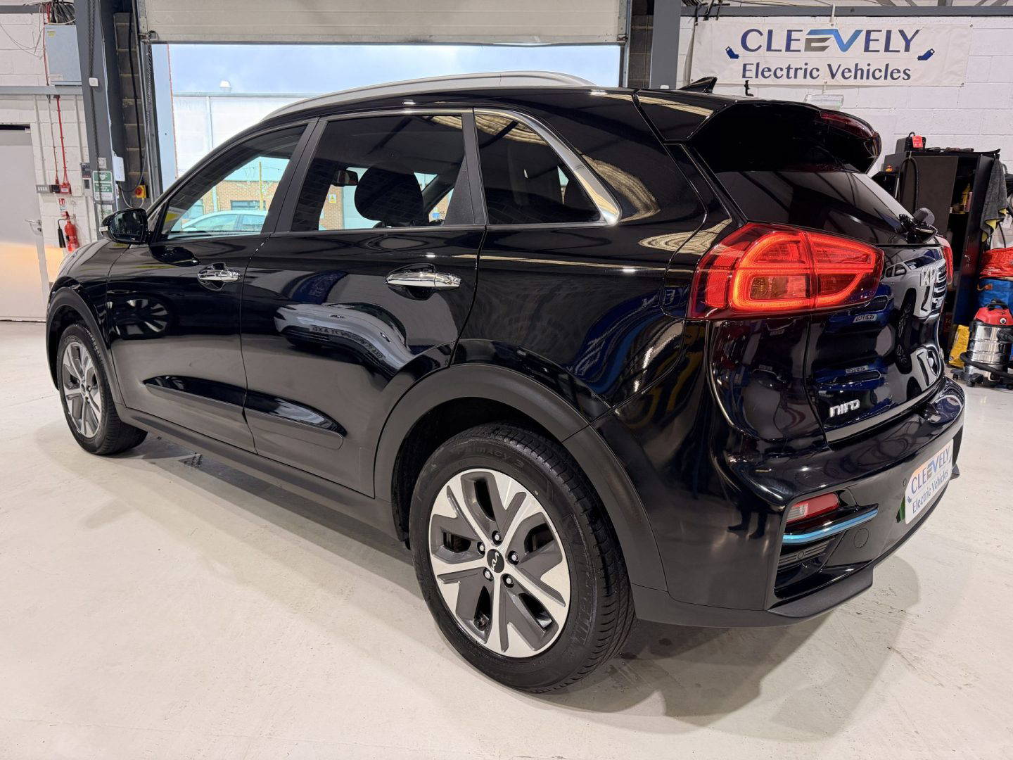Kia eNiro 3, finished in black. This car comes with the following: 10” touchscreen satnav, DAB radio, 6 speaker sound system, 17” alloy wheels, adaptive smart cruise control, Apple Car Play and Android Auto, wireless phone charging, auto dimming rear mirror, auto headlights, Bluetooth connectivity, heated front seats, heated steering wheel, lane assist, rear privacy glass, front and rear parking sensors, colour reversing camera, electric windows, electric folding wing mirrors, auto dimming rear view mirror, LED daytime running lights, roof rails, rear spoiler, solar glass, shark fin antenna, driver’s seat lumber support, ISOFIX system.