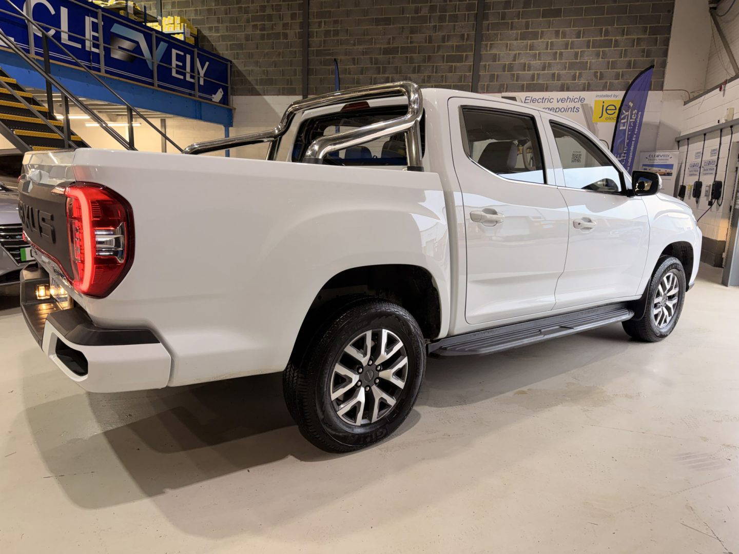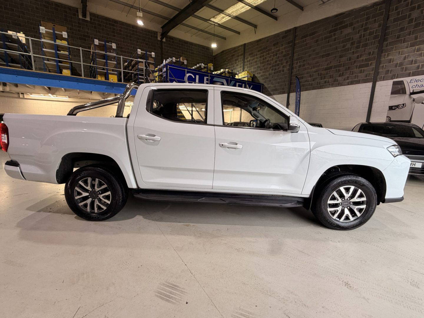 We are pleased to present this MAXUS T90EV 88.5kWh Pickup, finished in white. This all-electric pickup combines rugged capability with the latest EV technology, making it a perfect choice for both work and adventure. Features 10.25” colour touchscreen infotainment system, DAB radio, Apple CarPlay, rear parking sensors, colour reversing camera, 17” alloy wheels, electric front windows, side steps, electric leather seats. This vehicle was over £50k new. We are pleased to present this MAXUS T90EV 88.5kWh Pickup, finished in white. This all-electric pickup combines rugged capability with the latest EV technology, making it a perfect choice for both work and adventure. Features 10.25” colour touchscreen infotainment system, DAB radio, Apple CarPlay, rear parking sensors, colour reversing camera, 17” alloy wheels, electric front windows, side steps, electric leather seats. This vehicle was over £50k new. Range approx 200-250 miles. Type two charge cable included in sale. Power BHP: 177 BHP | Drivetrain: Rear Wheel | Top Speed: 104 MPH Service history. 2x Keys.