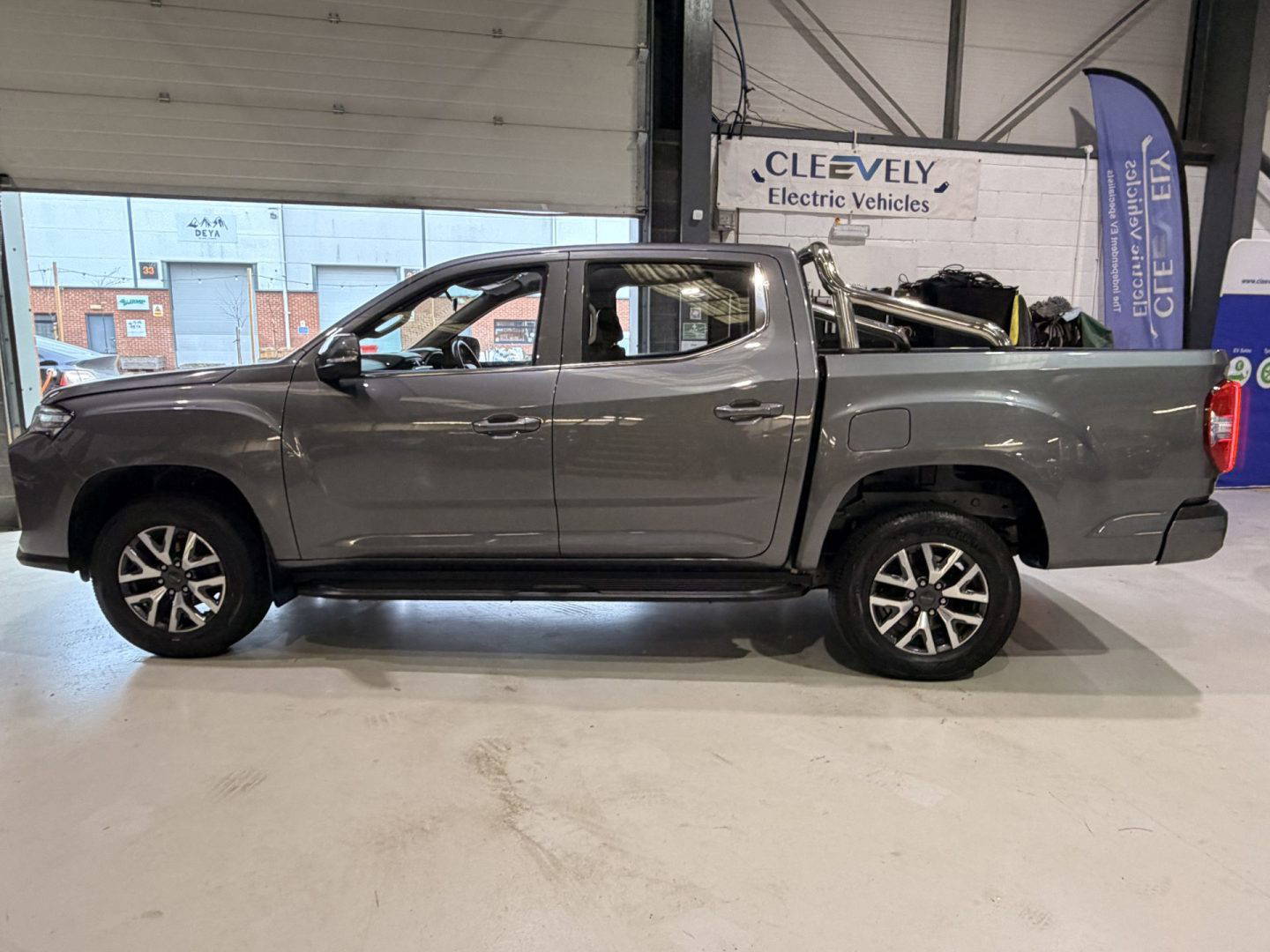 We are pleased to present this MAXUS T90EV 88.5kWh Pickup, finished in grey. This all-electric pickup combines rugged capability with the latest EV technology, making it a perfect choice for both work and adventure. Features 10.25” colour touchscreen infotainment system, DAB radio, Apple CarPlay, rear parking sensors, colour reversing camera, 17” alloy wheels, electric front windows, side steps, electric leather seats. This vehicle was over £50k new.