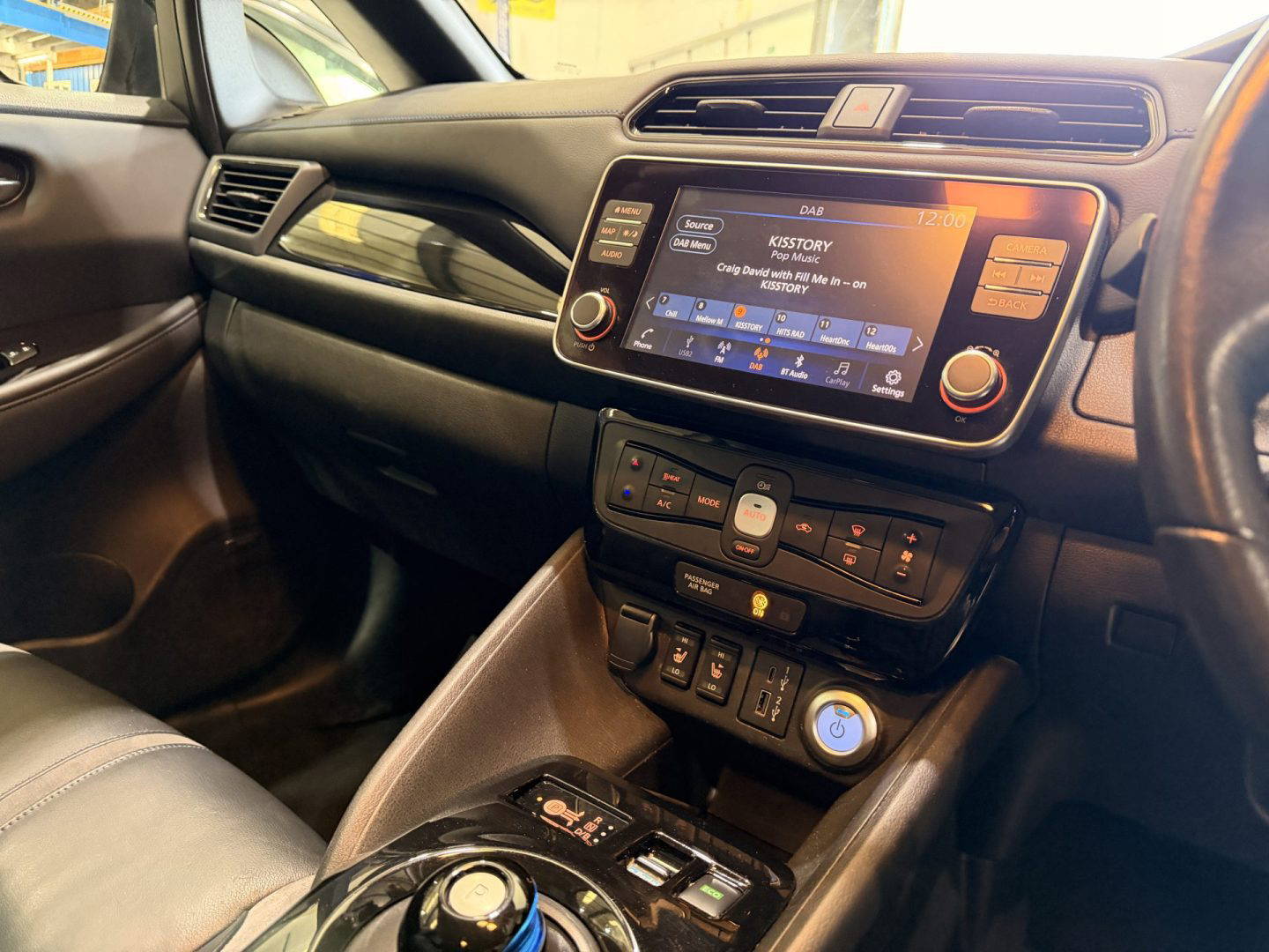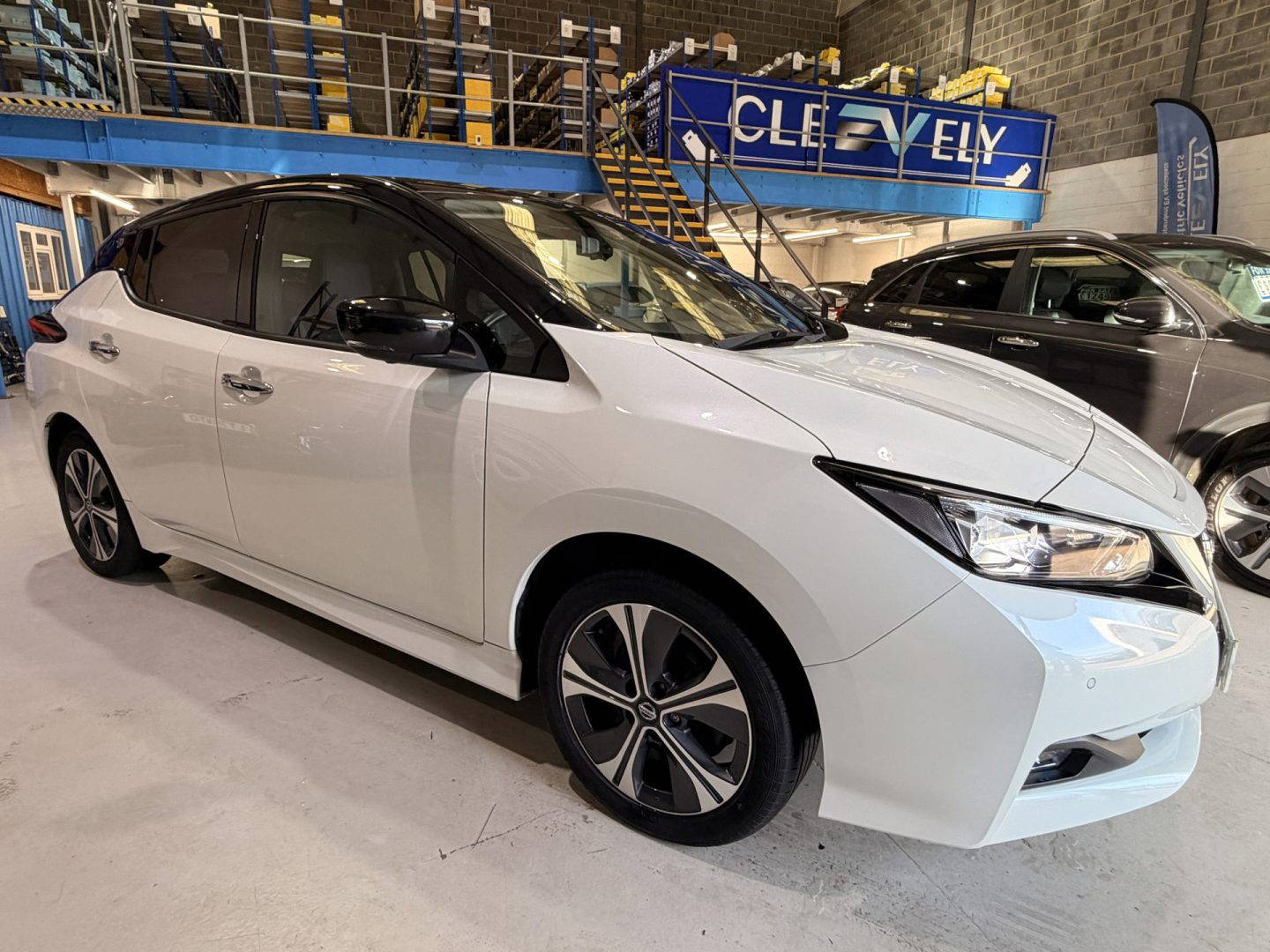 Stunning white Nissan Leaf e+ TEKNA, this vehicle has a superb spec, including; 17 inch alloy wheels, larger touchscreen navigation and entertainment system, USB/AUX connections, Bluetooth, DAB radio with Apple CarPlay & Android Auto, BOSE Premium audio system with 7 speakers, reversing camera, front & rear parking sensors, intelligent cruise control, E-pedal, electric windows, electric folding mirrors, heated front & rear seats, heated steering wheel, suede/leather fabric seats, rear privacy glass, rain sensing wipers, blind spot warning, shark fin, 6.6kw charger.