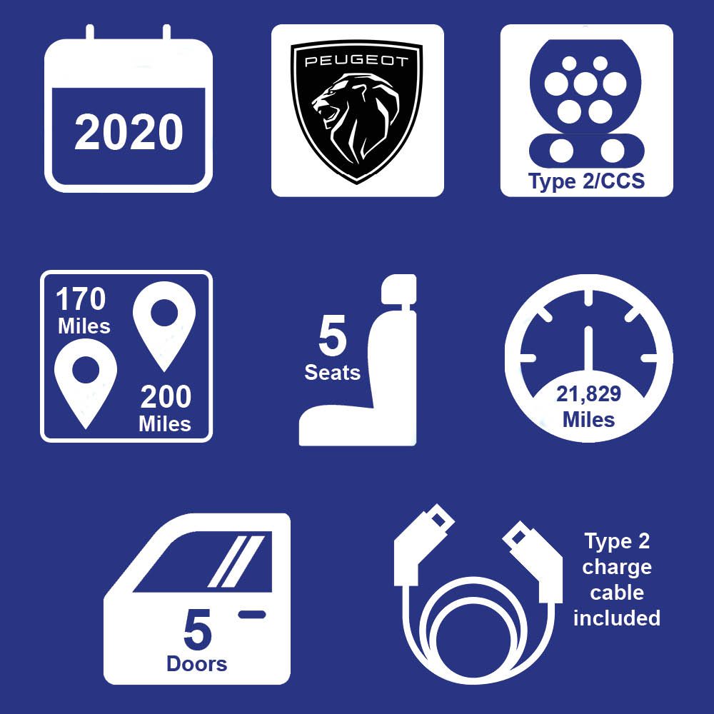 Range approx 170-200 miles. Type two charge cable included in sale. Power BHP: 134 BHP | Cargo: 434L | Drivetrain: Front Wheel | Top Speed: 93 MPH Service history. MOT. 2x Keys.