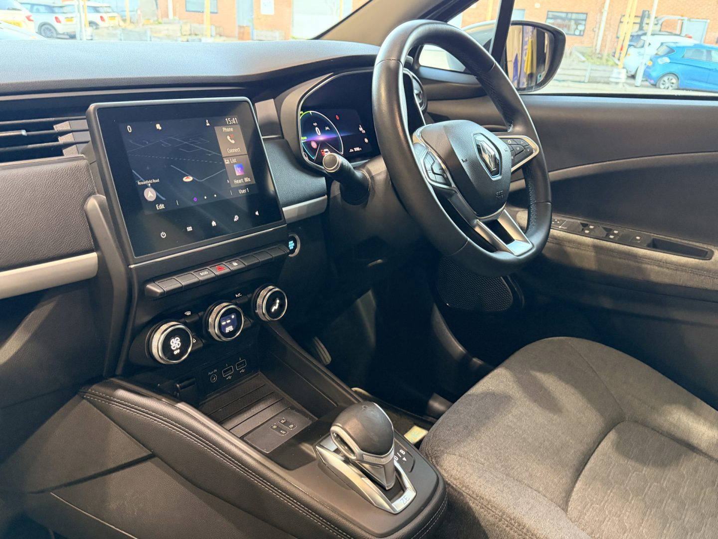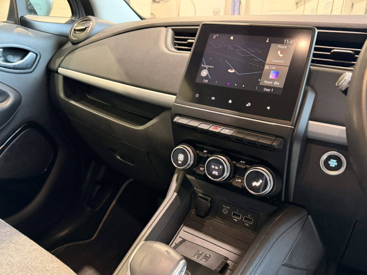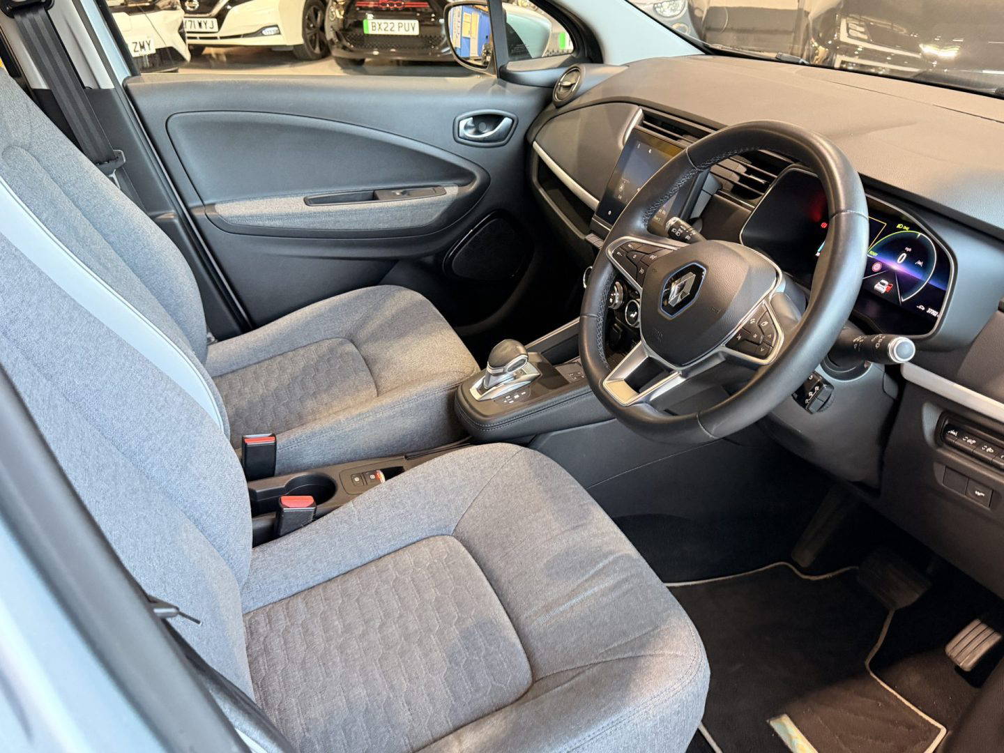 Renault Zoe Iconic finished in silver, this is the Iconic trim, it has cloth seats, electric widows, electric folding wing mirrors, Easy Link 7” TFT colour screen, DAB radio, rear parking sensors, sat nav, cruise control and speed limiter, Eco mode, USB sockets, auto wipers, auto dimming rear view mirror, air con, soft touch steering wheel, split rear seats, 16” alloy wheels, tinted rear windows. Comes with CCS for rapid charging.