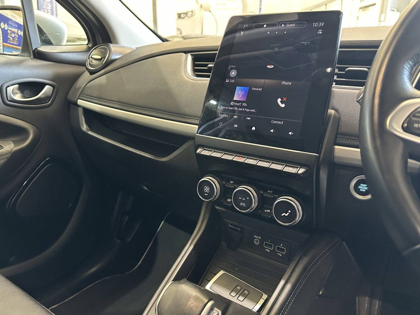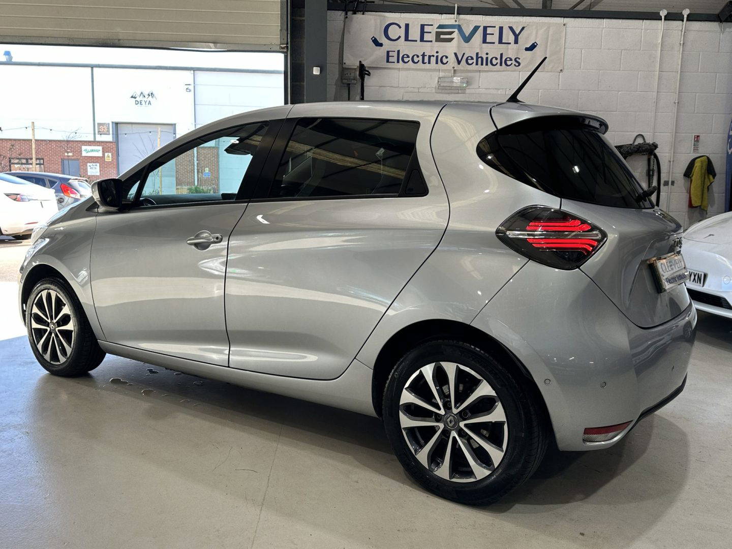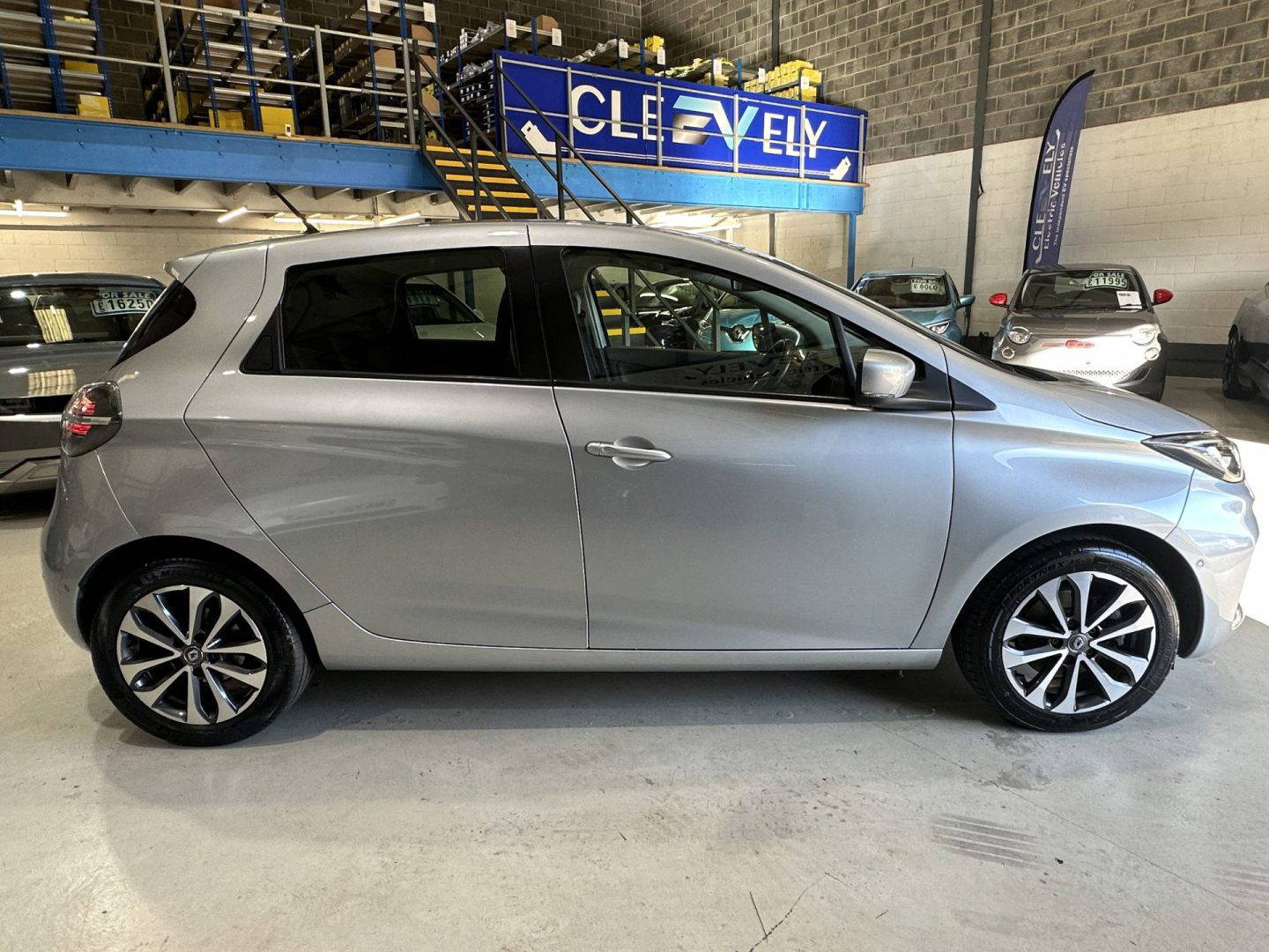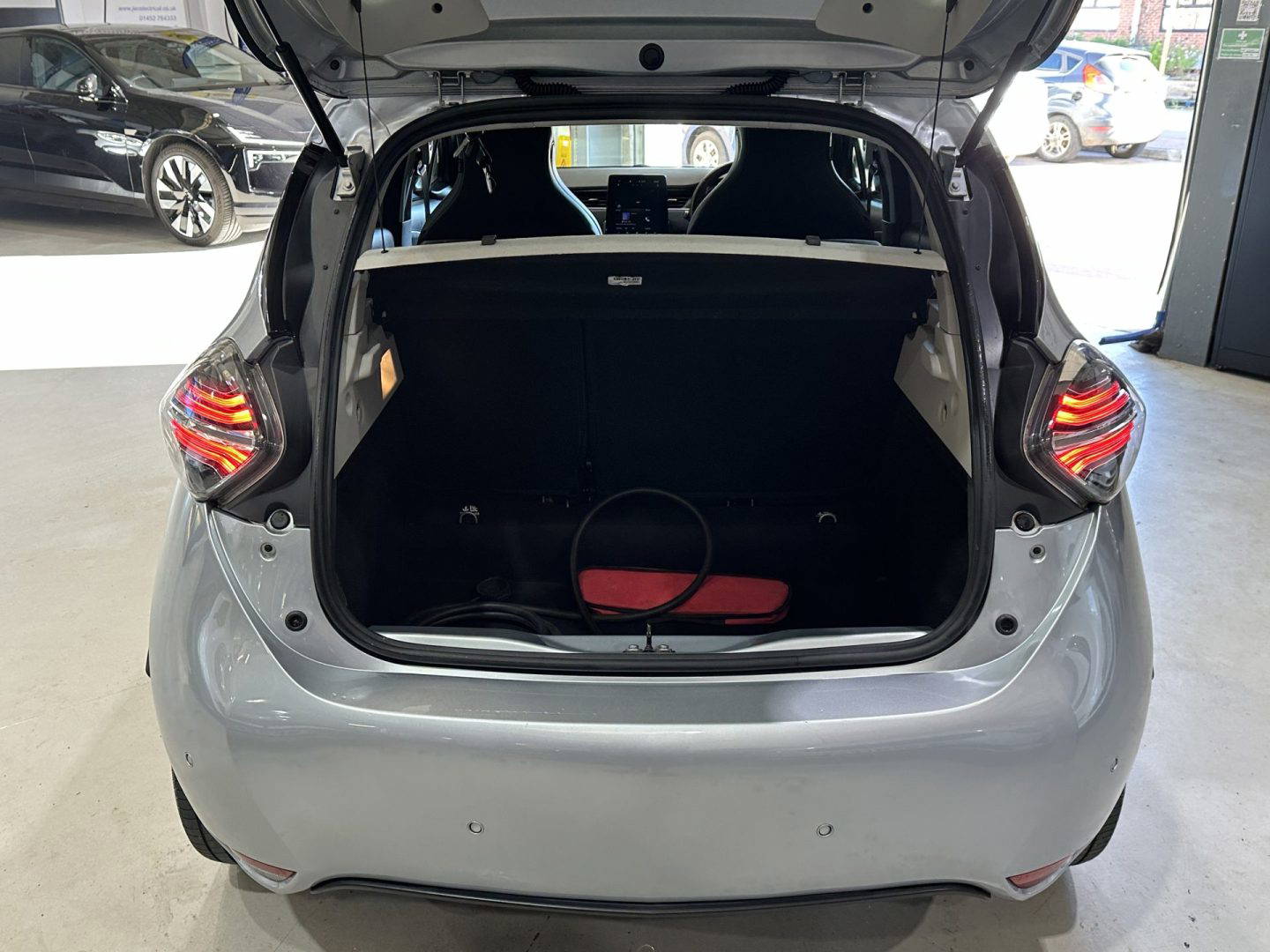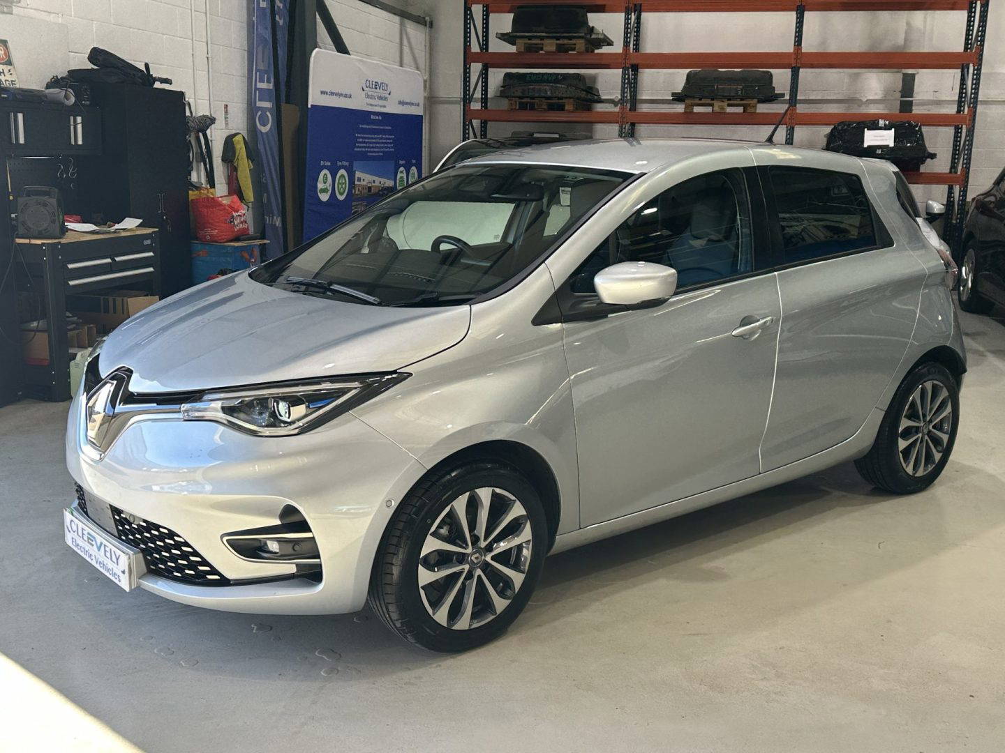 Renault Zoe GT Line Plus finished in metallic silver, with part leather part cloth seats, electric widows, electric folding wing mirrors, 10” TFT colour screen, DAB radio, 6x speakers, parking sensors front and rear, colour reversing camera, heated front seats, heated steering wheel, sat nav, cruise control and speed limiter, lane departure warning, blind spot warning, Eco mode, USB sockets including rear, auto wipers, auto dimming rear view mirror, air con, soft touch steering wheel, split rear seats, 16” alloy wheels, tinted rear windows. Comes with CCS for rapid charging.