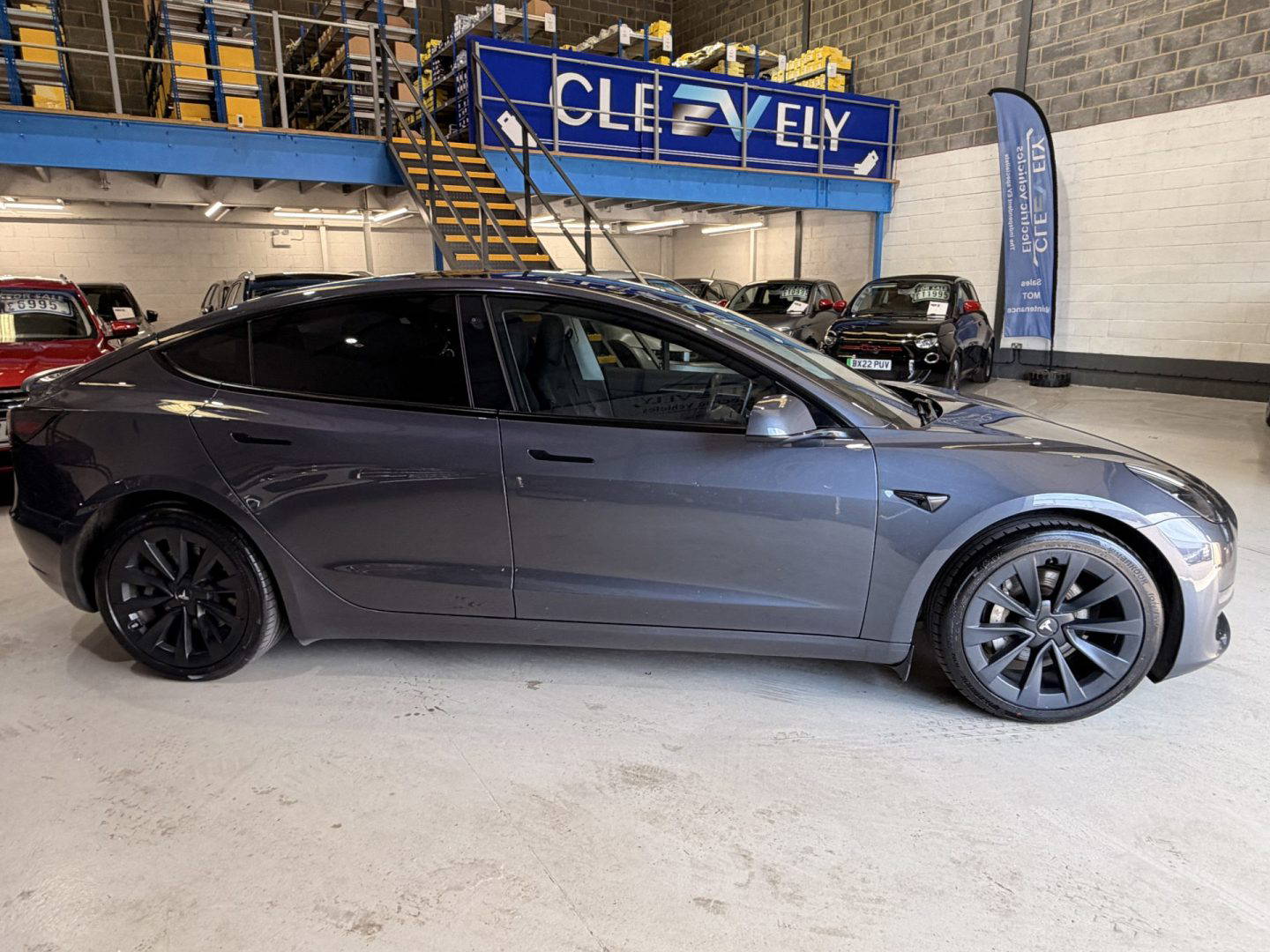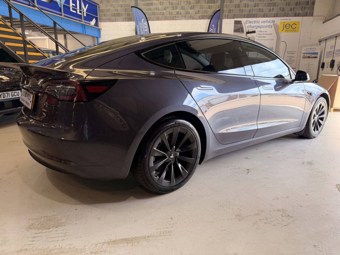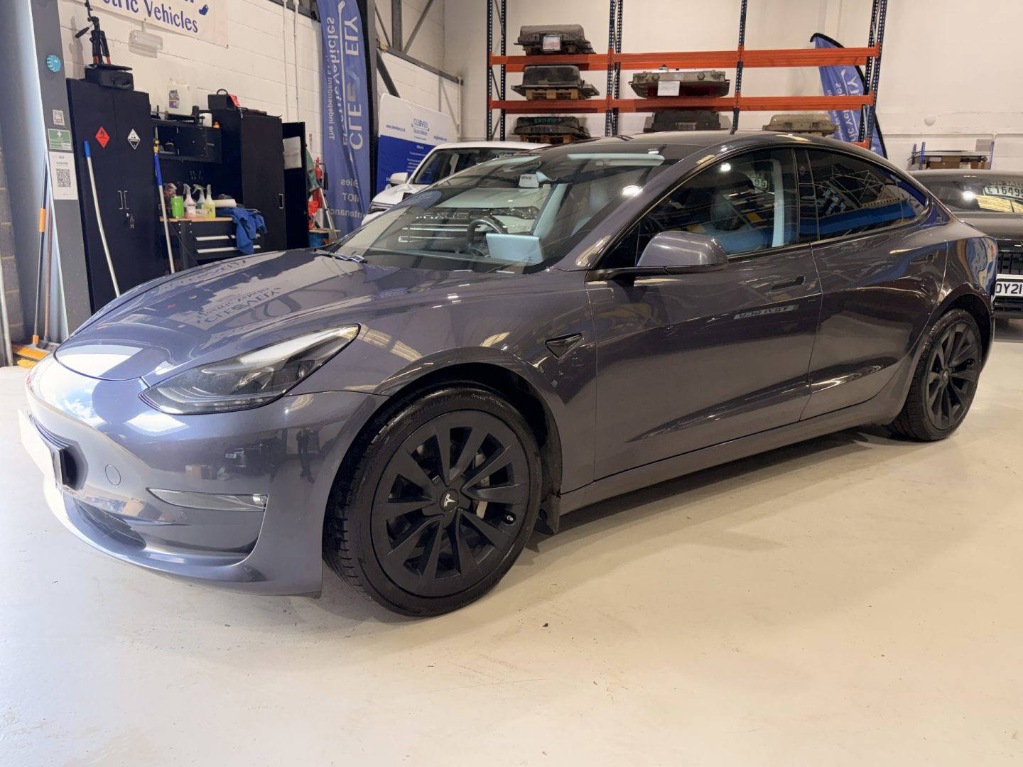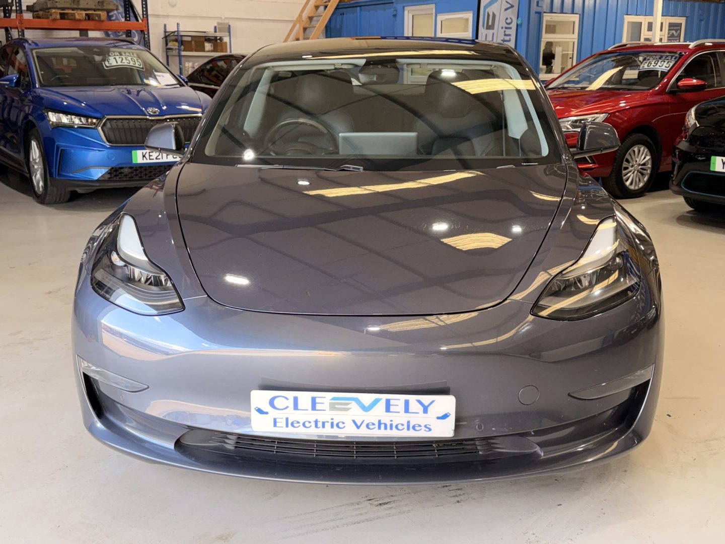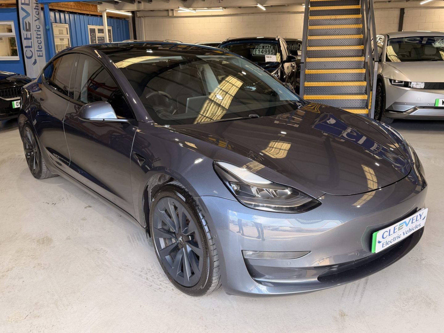 Tesla Model 3 all wheel drive long range in stunning grey. Black leather interior with the following: heated front and rear seats, heated steering wheel, premium speakers, LED fog lamps, tinted glass roof with UV and infrared protection, electric windows, electric folding wing mirrors, centre console with USB ports and wireless charging, 15” centre touchscreen, navigation system, Bluetooth, 19” black alloy wheels, keyless entry, control from your app on your smartphone, 60/40 split folding rear seats, rear parking camera, front and rear parking sensors, voice activated controls, adaptive cruise control, steering wheel mounted controls, electrically adjustable driver and passenger seats, software updates over wifi. Your car will be continuously upgraded through over-the-air software updates. Access to Tesla super charging network.