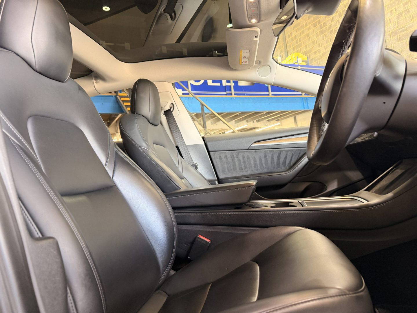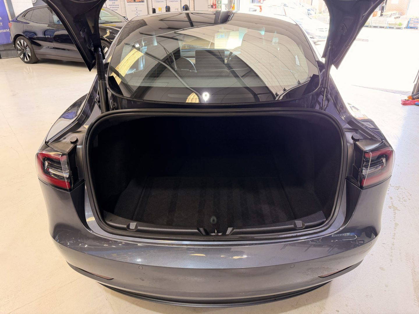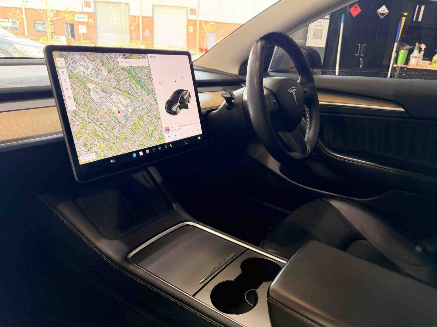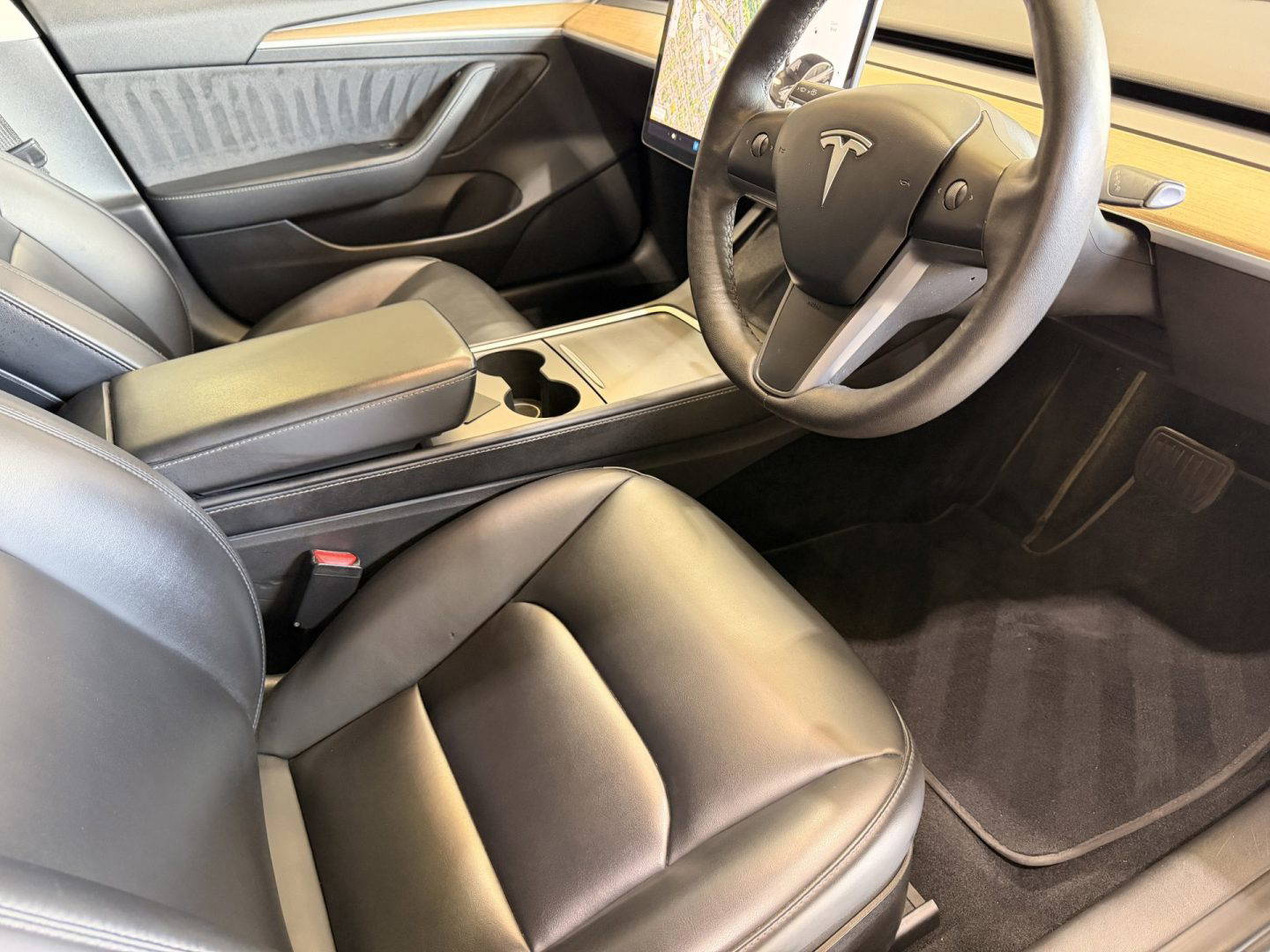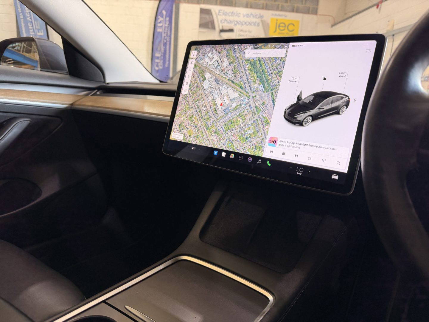Tesla Model 3 all wheel drive long range in stunning grey. Black leather interior with the following: heated front and rear seats, heated steering wheel, premium speakers, LED fog lamps, tinted glass roof with UV and infrared protection, electric windows, electric folding wing mirrors, centre console with USB ports and wireless charging, 15” centre touchscreen, navigation system, Bluetooth, 19” black alloy wheels, keyless entry, control from your app on your smartphone, 60/40 split folding rear seats, rear parking camera, front and rear parking sensors, voice activated controls, adaptive cruise control, steering wheel mounted controls, electrically adjustable driver and passenger seats, software updates over wifi. Your car will be continuously upgraded through over-the-air software updates. Access to Tesla super charging network.