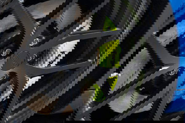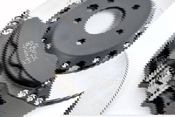 The brake calipers are lightweight six-pot single piece aluminium mono-bloc design.